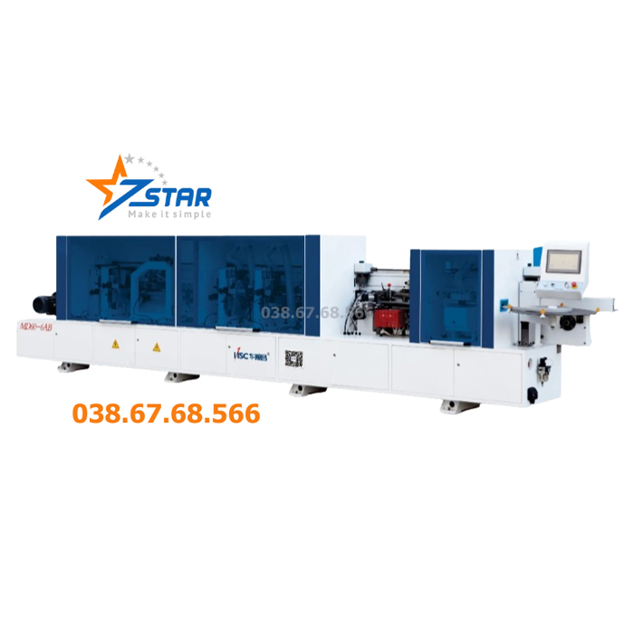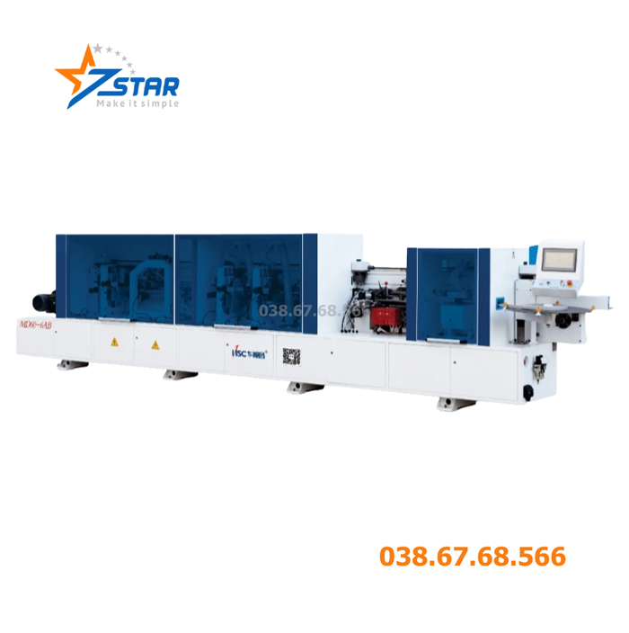 - Máy dán cạnh tự động vối ưu thế thiết kế đẹp bắt mắt, khung xương khoẻ chắc chắn giúp máy dán được với tốc độ cao.