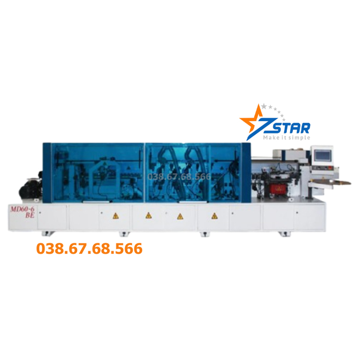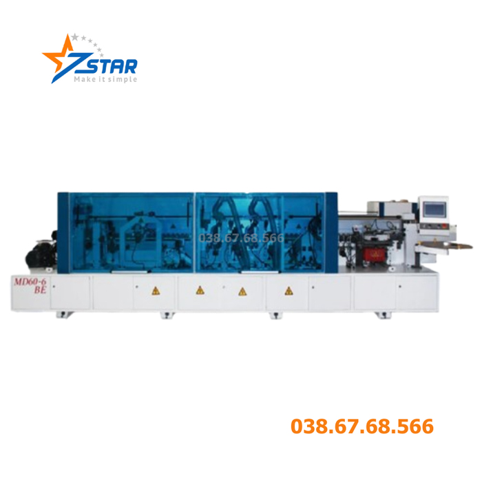 - Tự động đưa phôi, lăn keo, dán cạnh, cắt chỉ thừa.