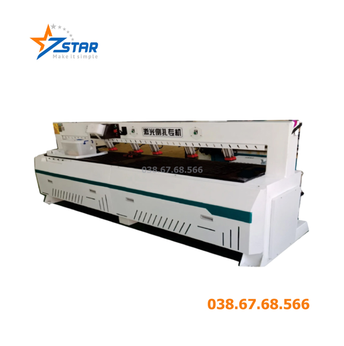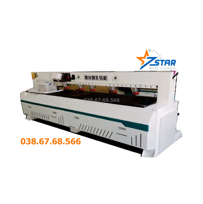- Máy khoan ngnag laser tự động sử dụng để khoan lỗ cam chốt định vị lỗ cam chốt, máy tự động dò tìm lỗ cam chuẩn sát, không mất công tạo cữ chặn hay do khảong cách lỗ.