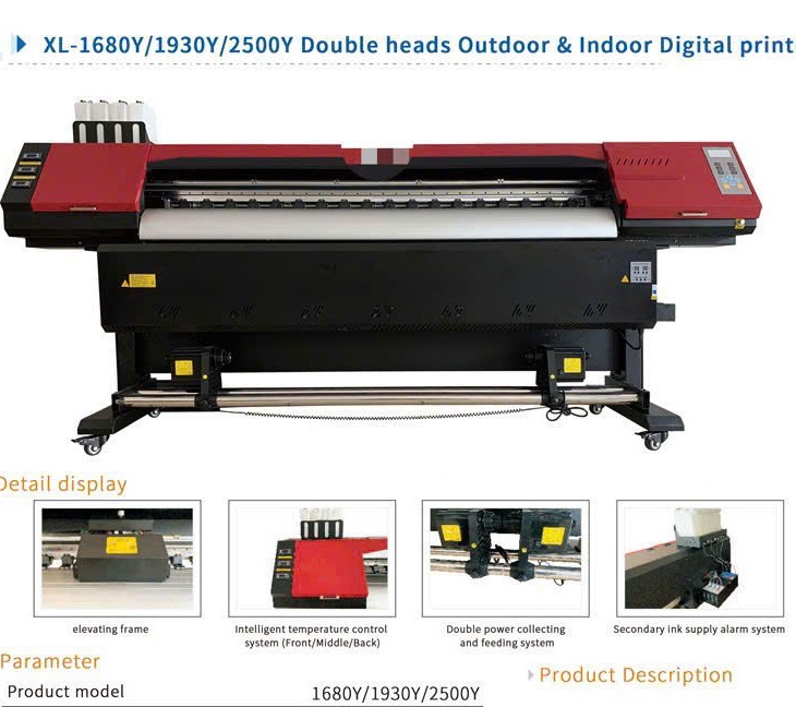 Máy in decal khổ lớn XL-2500Y sử dụng khung hợp kim nhôm chống cong vênh, hệ thống gia nhiệt hồng ngoại + quạt gió nóng giúp mực khô nhanh, bám tốt.